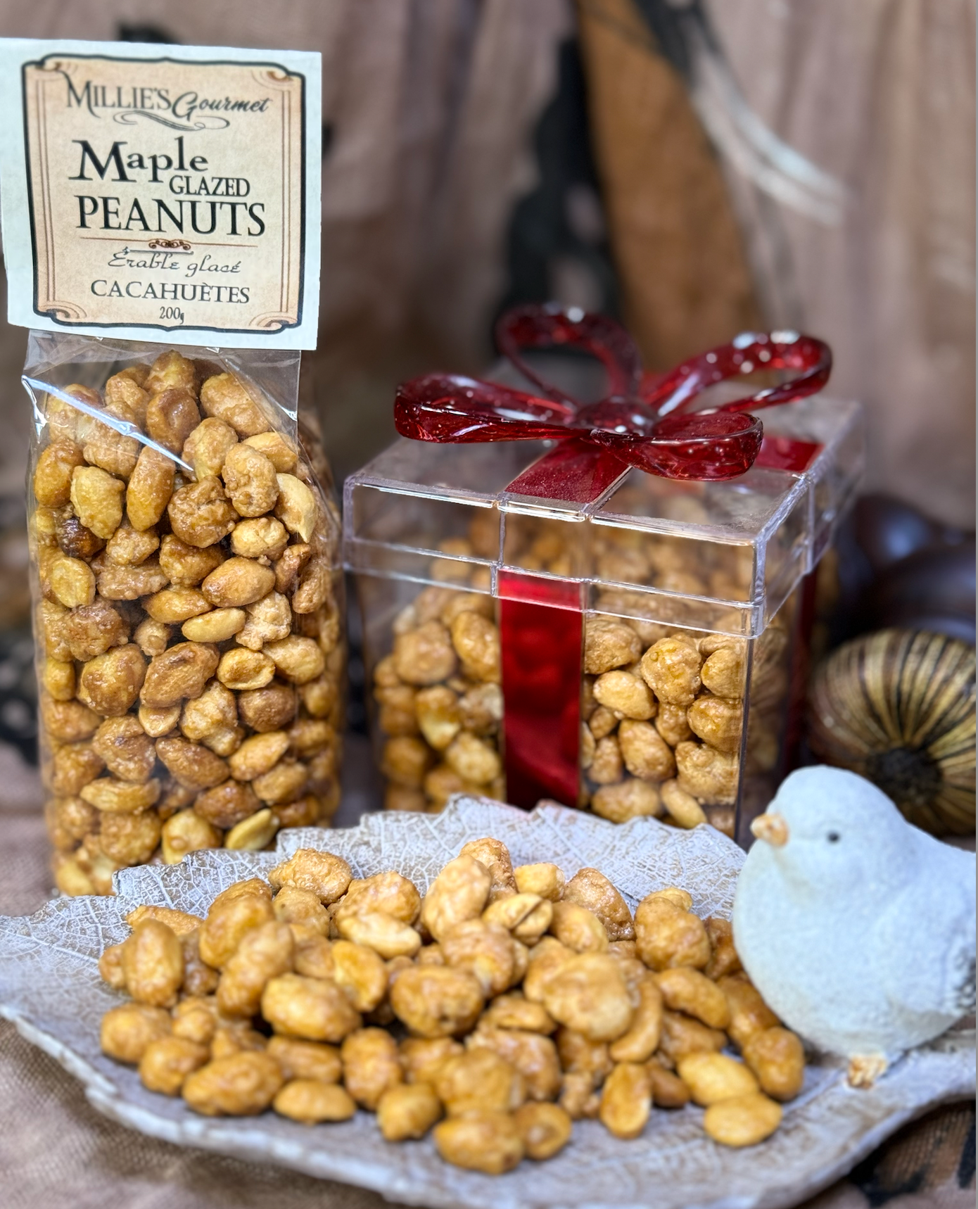 Indulge in the sweet and nutty combination of our Maple Candied Peanuts. Made with real maple syrup, these peanuts have the perfect balance of sweetness and crunch. Perfect for snacking or adding a delicious topping to your favourite desserts. 200g packages