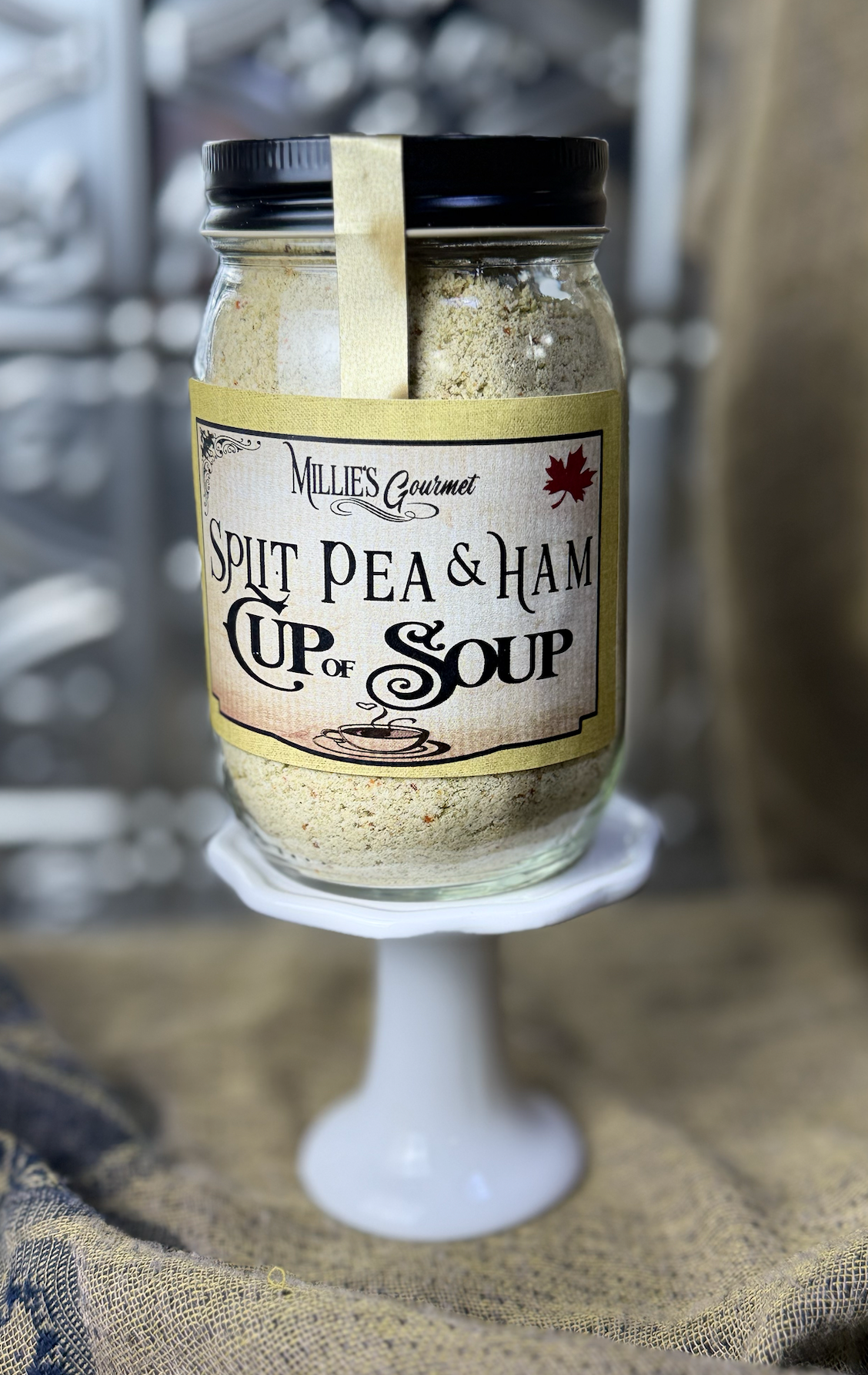 Our Split Pea & Ham Cup of Soup is now available in Bulk Jars. Makes 10 cups of Soup. To use at your convenience.